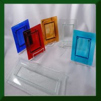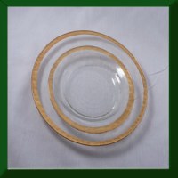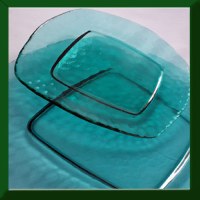 Glass with Gold Band Gobi Plates French Glass Mosaic Square Aqua